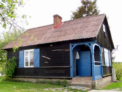 Poniatówka z niebieskimi okiennicami