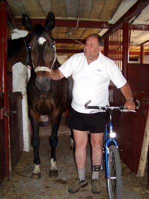 Jerzy Szymański, pracujący w renomowanych restauracjach w Trójmieści (m.in. w Grand Hotelu w Sopocie), jest przekonany, że odniesie sukces. Na zdjęciu z koniem i... rowerem. Fot. Marek Grania