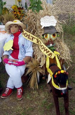 Przed jednym z dwóch namiotów siedzi kukła sołtysowej. W środku kolorowo od owoców. W drugim namiocie sporo... os. Gdyby to one miały głosować co do pyszności wypieków, to I miejsce murowane. Witają nas Halina Wika, Elżbieta Doering, Teresa Ceyrowska, Regina Łuczyc, Elżbieta Szlosowska, Maria Kołodyńska i Danuta Bukowska. - Nastawiłyśmy się na wyroby kulinarne i rękodzieło - mówi Regina Łuczyc. - Słodycze koniecznie trzymamy w koszach wiklinowych. A kukłę sołtysowej ja zrobiłam. Bo nasza sołtysowa to babka jest morowa. Zrobiłam ją ekspresem. Koń mógłby być z owoców, ale naturalny. Takie figury można robić w całości ze wszystkiego, co rośnie w ogrodzie... Szkoda, że jesteśmy w wieku przedemerytalnym. Nie ma pań w wieku 30 - 40 lat. Tłumaczą się, że mają dużo pracy, ale to jest jakaś ogólna niechęć do społecznego działania.
