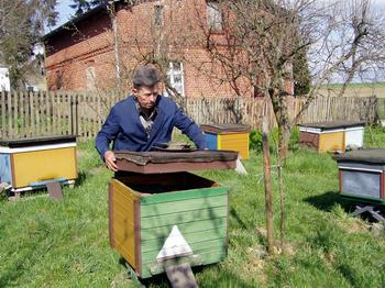 Ma pan ule. Ile? - 42 pnie. Ja od 1966 roku z pszczołami narabiam. Kupiłem w Starogardzie 4 ule i od tego się zaczęło. Szkoda, że zeszłego roku nic nie dało. Jeden z Osieka też mówił, że dało tylko trocha. Teraz sam nie mam miodu.