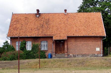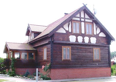 Budynek po byłej szkole w Kolinczu. Przeniesiony z Kupiów drewniany dom.