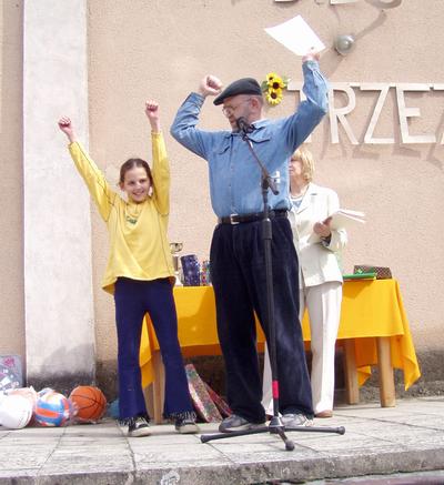 No to skąd ten dres? - Kupiłam. O.K. Ta odpowiedź nas satysfakcjonuje. Żadne USA, żadne barwy innego kraju. Po prostu POLSKA i tyle. I biegną. Kategoria za kategorią. W sumie 123 osoby. Nie licząc wójta gminy Antoniego Cywińskiego i radnej Grażyny Dery, którzy towarzyszą każdemu biegowi w charakterze obsługi technicznej. W starszych kategoriach wygrywają faworyci, m.in. w seniorkach Lucyna Pączek ze Starogardu i oczywiście mistrz Dariusz Klein z Dabrówki, od lat reprezentujący barwy Oleśniczanki. Darek jest 10-krotnym medalistą mistrzostw Polski. Rozmawiamy z nim po biegu. - Kiedym mam wolny czas, kiedy nie biegnę w maratonach, biorę udział w takich biegach jak ten w Kaliskach. Mam córeczkę Sandrę i synka Oskara. Tutaj startowała też moja żona Gabriela.