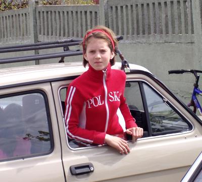 Z malucha wygląda dziewczynka z napisem POLSKA na dresie.