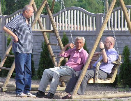 Fontanna będzie kolejnym elementem miejsca rekreacyjnego. Jest już kącik dla dzieci, huśtawka i - w drugim rogu - zadaszone drewniane stoły z ławami. - Dobrze, że zabronili pić piwo w tym publicznym miejscu - zauważa Edward Jasiński, który przed chwilą bujał się na ławce z wójtem Antonim Cywińskim i inż. Ciesielskim (na drugim zdjęciu stoi). - Przez to będzie mniej wandalizmu.