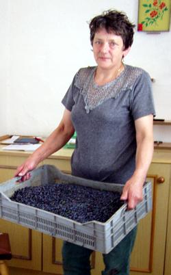 Zdjęcie. Bogumiła Szarafin codziennie odbiera tu około 130 kilogramów jagód. Może dlatego w sołectwie Dabrowa przy berlince stoi mało dzieciaków.
