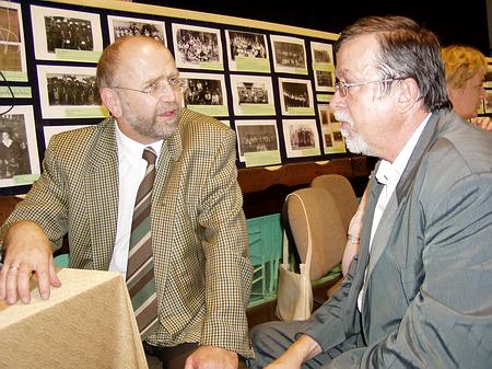 Antoni Cywiński, wójt gminy Kaliska, gdzie dożynek (podobnie jak w połowie innych naszych gmin) nie organizują, uważnie oglądał całą uroczystość w Zblewie i być może w przyszłym roku zobaczymy coś takiego w gminie Kaliska. Wiadomo przecież, że gmina słynie z bardzo pomysłowych imprez. Cywiński dyskutował też przy stoliku z Krzysztofem Kowalkowskim - autorem kilku monografii o wsiach kociewskich (Krąg, Brzeźno Wielkie, Nowa Wieś i inne).