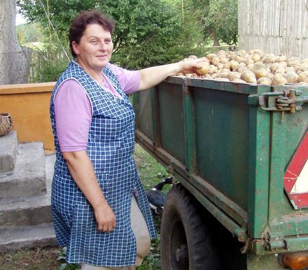 Pora wykopek. Na podwórze Jadwigi Koprowskiej zajeżdża ciągnik wyładowany ziemniakami. Ziemniaki jak ziemniaki. Może trochę małe. Trudno się dziwić - ziemia tu kiepska.