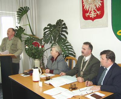 Nastąpiła likwidacja, pieniądze przepadły. Inne głosy w tej sprawie. Idziemy pod dyktando banku światowego. To ten bank nam likwiduje. Dewastuje się dworce kolejowe, rozbiera wieże. W sprawie wieży w Ocyplu wystąpiliśmy do prokuratury. Poparcie mogłoby być przy jakiejś koncepcji, na przykład zakładającej wciągniecie w to Urzedu Marszałkowskiego i podmiotu gospodarczego. Mówiono też, że nieduża lokomotywa kosztuje ponad 2 mln. zł. Jeden z radnych nie wyobrażał sobie, żeby sam pan starosta zawiadował. Padł tez głos taki: Tu, na tej sali, powinien być właściciel kolei.A potem dyskutowano o drodze krajowej przechodzącej przez Zelgoszcz i o drodze wiodącej przez Wdę. Zmorą tej pięknej turystycznej miejscowości są TIR-y. Nie powinny tamtędy jeździć. Burzą spokój, naruszają budynki. A tak w ogóle jak to może być, że 30-tonowy TIR jedzie przez 15-tonowy mostek?Mówiono też o ewentualnych inwestycjach.