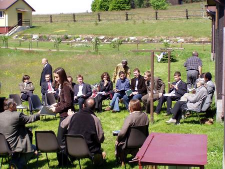 Sobota. Krótka przerwa w obradach. Naukowcy wyszli na chwilę na słońce.