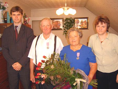 50-lecie Pożycia Małżeńskiego obchodzili w dniu 30.08.2005 r. Państwo Jadwiga i Bronisław Stachelek z Lubichowa.  Do emerytury prowadzili gospodarstwo rolne w Lubichowie. Wychowali 5 dzieci i doczekali się 16 wnuków i 2 prawnuków. Z tej okazji Jubilatów odwiedzili: Sławomir Bieliński – Sekretarz Gminy oraz Wiesława Kazubowska Z-ca Kierownik USC. W imieniu Prezydenta RP Jubilaci zostali udekorowani Medalami “Za długoletnie Pożycie Małżeńskie” oraz wręczono im list okolicznościowy i upominek od Gminy Lubichowo. |