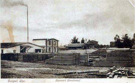 Rodziny były wielodzietne, załóżmy - 6-osobowe. Wynika z tego, że każdy mężczyzna miał pracę. Oczywiście teoretycznie... Ten pociąg... Chciałby pan, żeby taki dzisiaj przejeżdżał przez Ocypel? - Jak najbardziej! Przynajmniej latem. Not. Dorota Skolimowska Foto 1. Tartak w Ocyplu. Nad zabudowaniami wysoki komin maszyny parowej. Tartak został rozebrany po wojnie. Repr. Tadeusz Majewski 2. Widok na dworzec kolejowy i wieżę ciśnień. Dzisiaj wieża jest zniszczona, a dworzec nieczynny. Repr. Tadeusz Majewski
