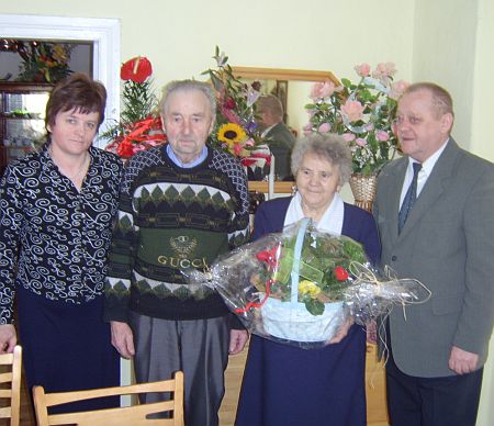 Z tej okazji Jubilatów odwiedzili: Ryszard Alechniewicz – Wójt Gminy i Wiesława Kazubowska – Z-ca Kierownika USC. Wójt Gminy wręczył Jubilatom list okolicznościowy oraz upominek od Gminy Lubichowo. |