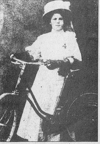 Oglądamy zdjęcia. Jedno chyba z 1921 r. Towarzystwo Rzemieślników Samodzielnych w Lubichowie i ta pani na rowerze, matka Heleny - Marianna.