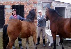Wychodzimy na starannie utrzymane podwórze. Jakoś nie chce nam się wierzyć w te złowróżbne słowa. Gospodarstwo wygląda naprawdę imponująco. Sołtys wyprowadza koniki. Ma do nich zamiłowanie. Wzięło się z kopalni, gdzie te podobno najpiękniejsze na świecie zwierzęta tyrały pod ziemią.