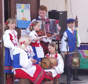 Każda duża impreza tworzy łańcuszek innych imprez i występów. Na zdjęciu Lubichowskie Kociewiaki z Piotrem Chrapkowskim z zespołu Leszcze. Fot. Tadeusz Majewski