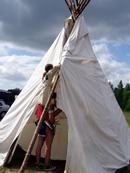 - Czerpiemy wiedzę z książek i albumów z Ameryki. Mamy wioski indiańskie. Konkretne, nie udawane. W Polsce są tylko trzy prawdzie wioski, z czego nasza, na Górnym Śląsku, jest największa, liczy sobie kilkanaście tipi. Pokryte są płótnem żaglowym, nie skórami bizona. Takich skór z bizona na jedno tipi trzeba by z osiemnaście. ;@ Dlaczego szukacie inspiracji w kulturze Indian, a nie w naszej historii? - Bo historia Indian jest podobna do historii Polaków. Porywano im dzieci, przymusowo zmieniano religię, ścinano im włosy. Do tego taka filozofia życia nam odpowiada. Jej istotnym elementem jest szacunek dla przyrody.