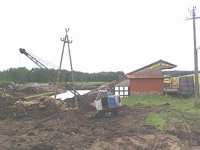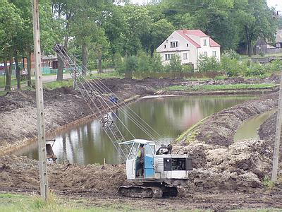 W miejscu, gdzie biegł rów, w obniżeniu terenu, trwają ogromne prace. W olimpijskim tempie dwie koparki przerzucają ziemię. Powstają wielkie stawy i kanał. Wszystko jest wykonywane profesjonalnie. Oni jeszcze kopią, a na obrzeżach stawów, fachowo wyłożonych plecionką, widać już ułożoną trawę.