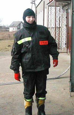 Młodzież ubrana jest w stroje strażackie. W remizie ćwiczą w strojach koszarowych. Ich starsi koledzy, kiedy wyjeżdżają na pomoc, zakładają stroje bojowe. - Są żaroodporne i wodoodporne - wyjaśnia nam Piotr Partyka, pokazując mundur i dodaje: - O, poza mundurem jest hełm i gumowce z metalową podeszwą.