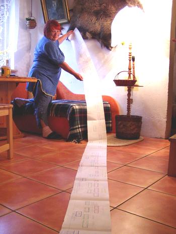 Słuchamy opowieści jej życia. O ślubie z Ryszardem (59 l.) - chłopakiem stąd, ale mieszkającym na Dolnym Śląsku, o 35-letniej pracy z kredą w ręku. - Teraz pół roku mieszkam tu, a zimą na Śląsku. Nie cierpię gór. Tu wszyscy przyjeżdżamy. A ja próbuję zrobić drzewo genealogiczne. Pomaga mi córka Karolina. Pani Urszula rozwija swoje opracowanie. Ciągnie się na podłodze jak papier z uruchomionej i zapomnianej drukarki. Ciekawe będzie zdjęcie.
