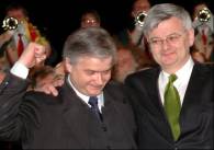 Na moście łączącym Słubice i Frankfurt nad Odrą moment wejścia Polski do Unii Europejskiej wspólnie z mieszkańcami obu miast świętowali ministrowie spraw zagranicznych Polski i Niemiec, Włodzimierz Cimoszewicz i Joschka Fischer. - Nie wierzę, że to się dzieje, dzieje się historia, dzieje się coś wspaniałego - dziennikarzom Włodzimierz Cimoszewicz. Joschka Fischer w pierwszych słowach serdecznie powitał Polaków w Unii Europejskiej. Mostem ministrowie przeszli na scenę w Słubicach, gdzie pozdrowili zebranych tam ludzi. Zwracając się do nich minister Cimoszewicz powiedział m.in., że na moście dokonało się coś, w co jeszcze kilka lat temu nikt by nie uwierzył. - Jednoczymy Europę. Dla mnie i Joschki Fischera to chwila nadzwyczajna, świadcząca o tym, że dzieje się historia - podkreślił minister.