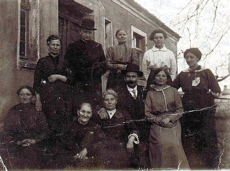 3. Publikowane po raz pierwszy zdjęcie z początku XX w. przedstawia ks. Pawła Jana Wieckiego z rodziną przed domem w Nowym Wiecu. W tym domu przyszła na świat s. Marta Wiecka i jej brat ks. Paweł Jan. Zbiór i foto repr. Edward Zimmermann