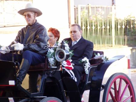Robi się chłodno. Wreszcie wychodzą. Kwiaty, pocałunki. Nagle nadjeżdża elegancką bryczką w dwa konie pan Witka ze Smoląga, zwykle przewodniczący Rady Gminy Bobowo, dziś w roli furmana. Państwo Śliwińscy wsiadają i wio - dookoła miasteczka: Sobieskiego, Hallera, 3 Maja, Starogardzką. Podobną imprezę zrobili w Skórczu tylko państwo Łacikowie. Szkoda, że już po godzinie 17, bo na ulicach pusto. Goście, przeważnie rodzina - z 80 osób - idą skrótem w stronę Domu Kultury, gdzie rozpcznie się zabawa.