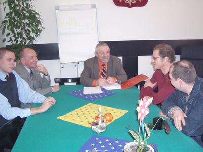 W Urzędzie Miasta w Skórczu odbyła się ciekawa dyskusja. Brali w niej udział burmistrz Skórcza Tadeusz Zieliński, sekretarz UM  Roman Kowalski, Marcin Hałas z UM, Stefan Galiński - na co dzień pracownik Starostwa Powiatowego, tutaj jako przedstawiciel stowarzyszenia "Kociewie", Jacek Sadowski - muzyk grający w zespole "Leszcze", tutaj też jako członek wyżej wspomnianego stowarzyszenia, i my. Dyskutowano o kulturze.