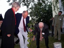 Łucja Ciesielska, Stanisław Grabowski oraz Roman Kolenda posadzili mały dąb z wielką radością.