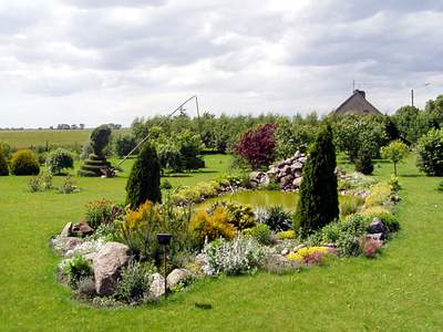 - Nie są potrzebne wielkie pieniądze, by zrobić taki ogród. Tylko trzeba chęci. Nawet takie wykopanie stawu nie jest zbyt kosztowne. Mam staw wykopany, można sobie rybki połapać. Jeszcze dom... Dach mamy eternitowy, ale "na DDR-ach" też ciągle jeszcze jest.