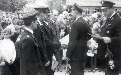 Foto 1. Wręczenie dyplomu strażakom - 1971rok. 2. Strażacy budują kotłownię - 2004 rok.