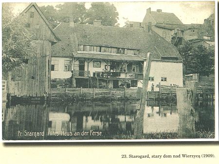 Mieszkałem podobno w najstarszym domu w Starogardzie. Nikt jednak w tamtym czasie nie zachwycał się urodą domostwa. Nazywano je krótko, dosadnie i pogardliwie - „stara buda". Przed wybuchem wojny w domu mieszkali: samotna osoba panna Neumann, w mieszkaniu z balkonem małżeństwo Tomaszewskich, pod balkonem stolarz Radomski. Z drugiej strony, od południa, mieszkała pani Warmbier, która miała zakład „prężenia firan i krochmalenia kołnierzyków". Z nią mieszkała córka, mężatka, Urszula Mauksz z dwojgiem dzieci, Jankiem i Ewą.