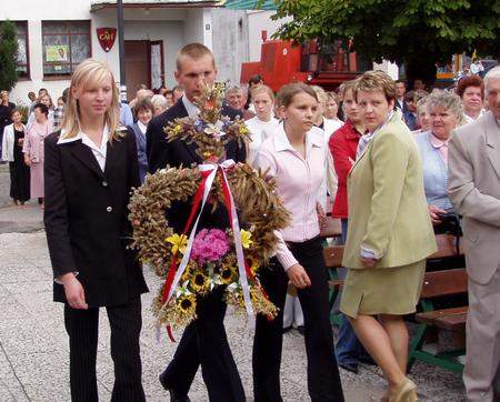Potem po kolei do ołtarza podchodzili reprezentanci sołectw i organizacji z wieńcami. Szli Jan Herold i Maria Teubner oraz Maryla Czajka z sołectwa Zblewo, Ryszard Gumiński, Beata Baran, Mariola Mróz z PSL-u, Krystyna i Jan Woźniak oraz Henryk Lemczyk z sołectwa Semlin, Aurelia i Piotr Spica z sołectwa Pinczyn, Beata i Marek Rogaczewscy, Kamila Wrzałka z sołectwa Miradowo, Małgorzta i Tadeusz Kołodziejczyk, Elżbieta Piaskowska - Kiełtyka z sołectwa Białachowo.