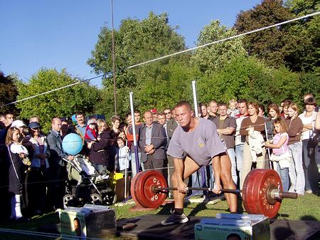 Do ciężarów podchodzili Arkadiusz i Piotr Heroldowie. Arkadiusz był w tej konkurencji -  w ciągu martwym - z 18. powtórzeniami 180 kilogramów - pierwszy,  drugi był jego brat, miał 14 powtórzeń, trzeci - Kazimierz Jasiński - 8 powtórzeń.