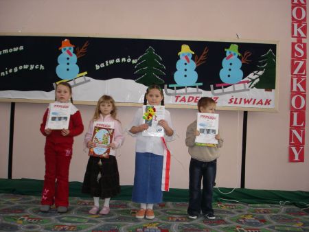 - w grupie uczniów kl. 0 – II 1. miejsce – Julia Herold, 2. miejsce – Patrycja Wilgorska, 3. miejsce – Kacper Kulas,