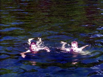 Prawie początek czerwca, a tu temperatury prawie że zimowe. A bywało, że kąpaliśmy się już na początku maja. Co więc robić? Chłopcy z Pieców (gm. Kaliska) – Marcin Ostrowski i Czarek Niewiadomski – postanowili odczarować złą pogodę i skoczyli do wody w Twardym Dole. Temperatura – ocenili – po pokonaniu małego dystansu – wynosi około 8 stopni. Ich ofiara coś pomogła, bo w sobotę była już ładna pogoda. Foto: PM |