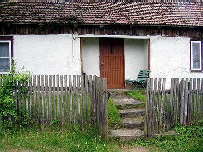 Dom był pod słomą. - Jak jest rychtyk ciepło, to tu nie można wytrzymać. Co tu takiego ciekawego? Madonna. Teściowa go dostała. Ma sto lat. Frontowe wejście zawsze było dla gości, księdza i listonosza. Teraz mam też otwarte. Ja tam siadam i obserwuję. I widzę, że taka pogoda, jak i rząd... Może mnie pan zamknąć. Ja się pana nie boję, czy pan mnie zamknie, czy nie.