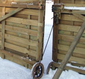 Wychodzimy i stajemy przed drewnianą bramą. Łatwo się otwiera, bo ma drewniane koło. Płot też z drewna. Ładny. Ot, taki to by zapewne kupowali. Pani Iwona się śmieje. Ogrodzenie robił jej mąż, kółko podpatrzył. Owszem, mąż pracuje przy ogrodzeniach, ale tych betonowych. Życzymy powodzenia. Może jednak pani Iwona coś nowego dla siebie wymyśli.