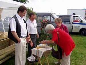 Rzecz zasadnicza - nie zabrakło dobrej pogody. To było główne zadanie wójta Andrzeja Gajewskiego. Wywiązał się z niego znakomicie – załatwił słońce, największą gwiazdę imprezy. A potem było, jak było, czyli zwyczajnie, z drobnymi elementami groteski. Do nich należy zaliczyć brak zadaszenia nad sceną do momentu przyjazdu gwiazdy Haliny Frąckowiak. Scena bez dachu wyglądała licho i nie tworzyła klimatu. Zawinili w tej sprawie sąsiedzi z gminy Skarszewy. Atrakcje rzec można już obecnie standardowe: samochodziki, ogromna zjeżdżalnia, liczne stoiska (niestety tylko cztery gminne na 13 gmin!), między innymi pyszna wata cukrowa i lody tradycyjne, konkurs międzysołecki, występy zespołów i wokalistek, przejażdżki koniem i bryczką itp. Jeden wielki misz masz, który wszędzie tworzy ową szczególną, jarmarczną atmosferę takich imprez. Gości też jakby pojawiło się mniej niż zwykle, ale to zrozumiałe. W tegorocznej pogodowej loterii, kiedy jest tak mało słońca, wielu na pewno miało dylemat: festyn czy jezioro. Cóż jeszcze. W “Kurierze Zblewskim” (2 nr pisma informacyjnego gminy Zblewo) mamy artykuł o krótkiej historii pięciu festynów. Widać, jak organizatorzy co roku z mniejszym lub większym powodzeniem szukali nowości. Były nimi na przykład: akcja zrzucania cukierków z motolotni, mecz piłki nożnej dziennikarze - politycy (2001 r. – festyn dwudniowy), pokazy sztucznych ogni i dwukrotnie Przegląd Orkiestr Dętych Województwa Pomorskiego. Widać po tym, że festyn ciągle nie może znaleźć swojej formuły. A ta leży na wyciągniecie ręki – czemuż by na przykład nie zorganizować podczas festynu kociewskiego festiwalu małolatów? One śpiewają nieraz dużo ciekawiej niż zmanierowane megagawiazdy z Warszawy. I palą się do występów. Do tego zabrakło mi ludowych konkurencji siłowych, jak to już na tym festynie było. Oczywiście to tylko życzliwa podpowiedź.